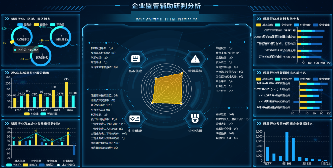 在苏州工业园区市场监督管理局和园区大数据中心的业务指导和技术支持下,我司为苏州工业园区市场监督管理局创建的“企业监管辅助研判系统”,构建了“企业监管辅助研判模型”,系统帮助市管局客户建立了行之有效的工作机制和模式,实现其对重点领域的监管工作,帮助市管局对园区十六万余家企业的经营行为进行监督和管理。